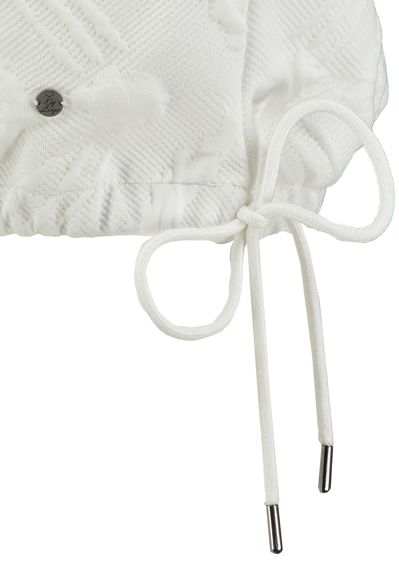 einem verspielten Detail. Das minimalistische Design in Off-White wird durch eine zarte
