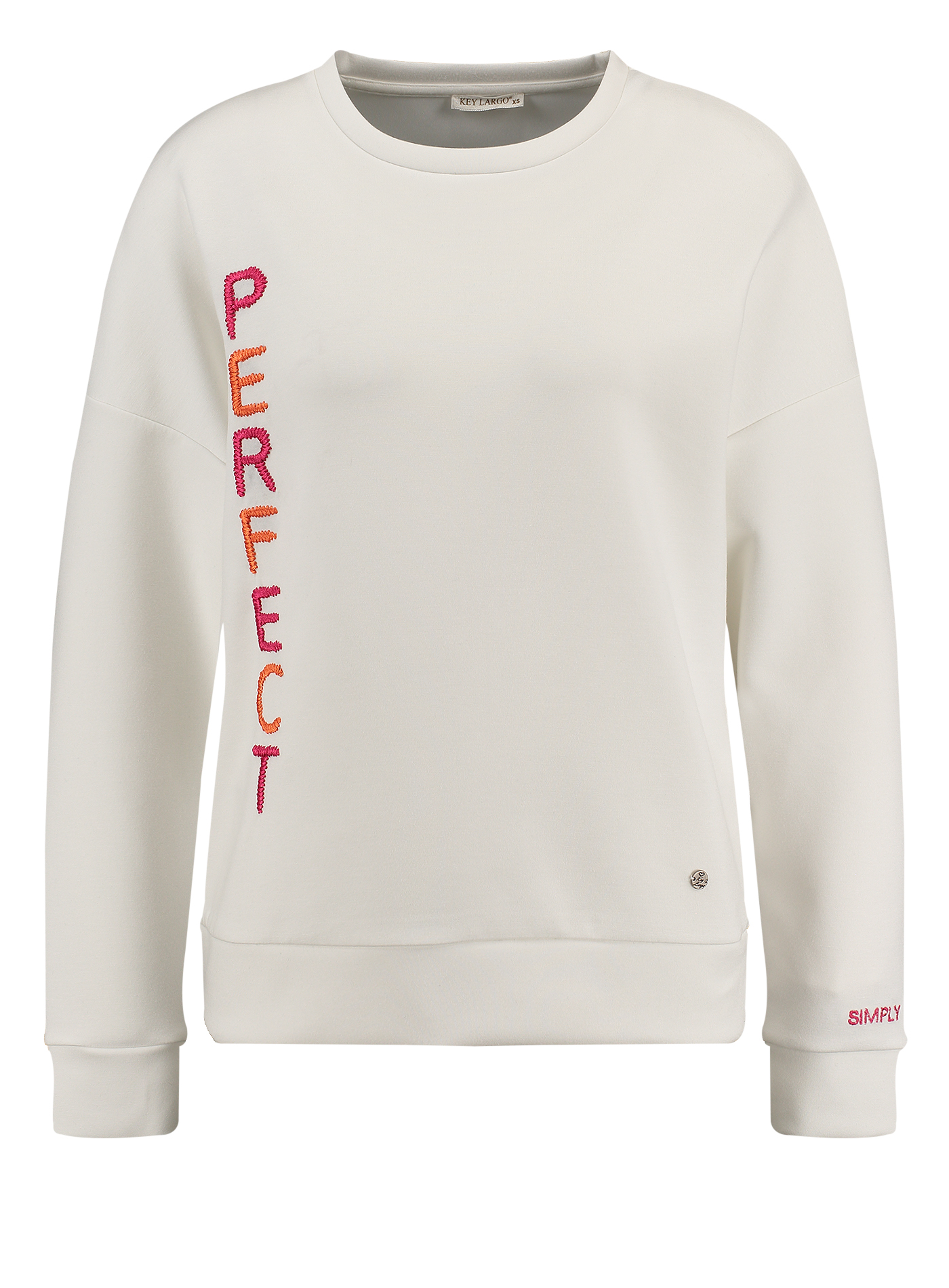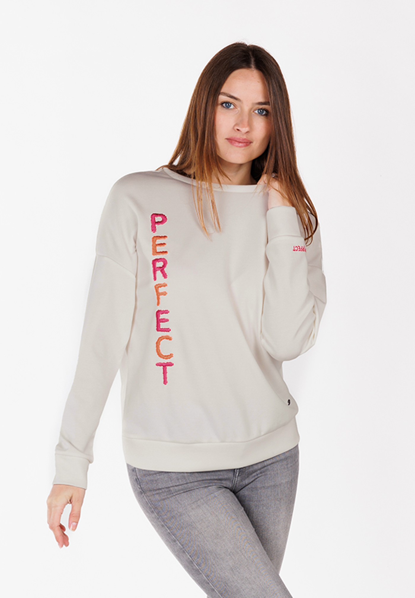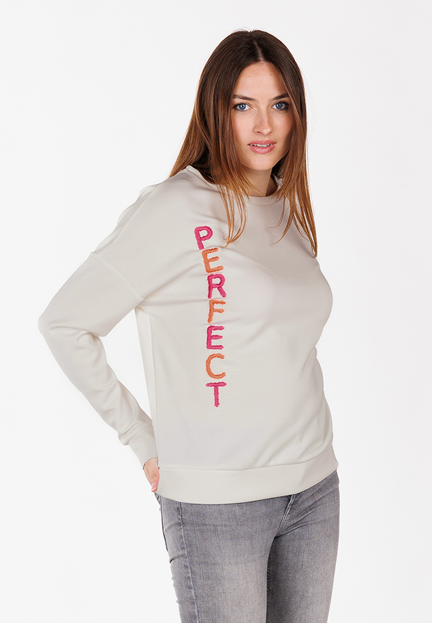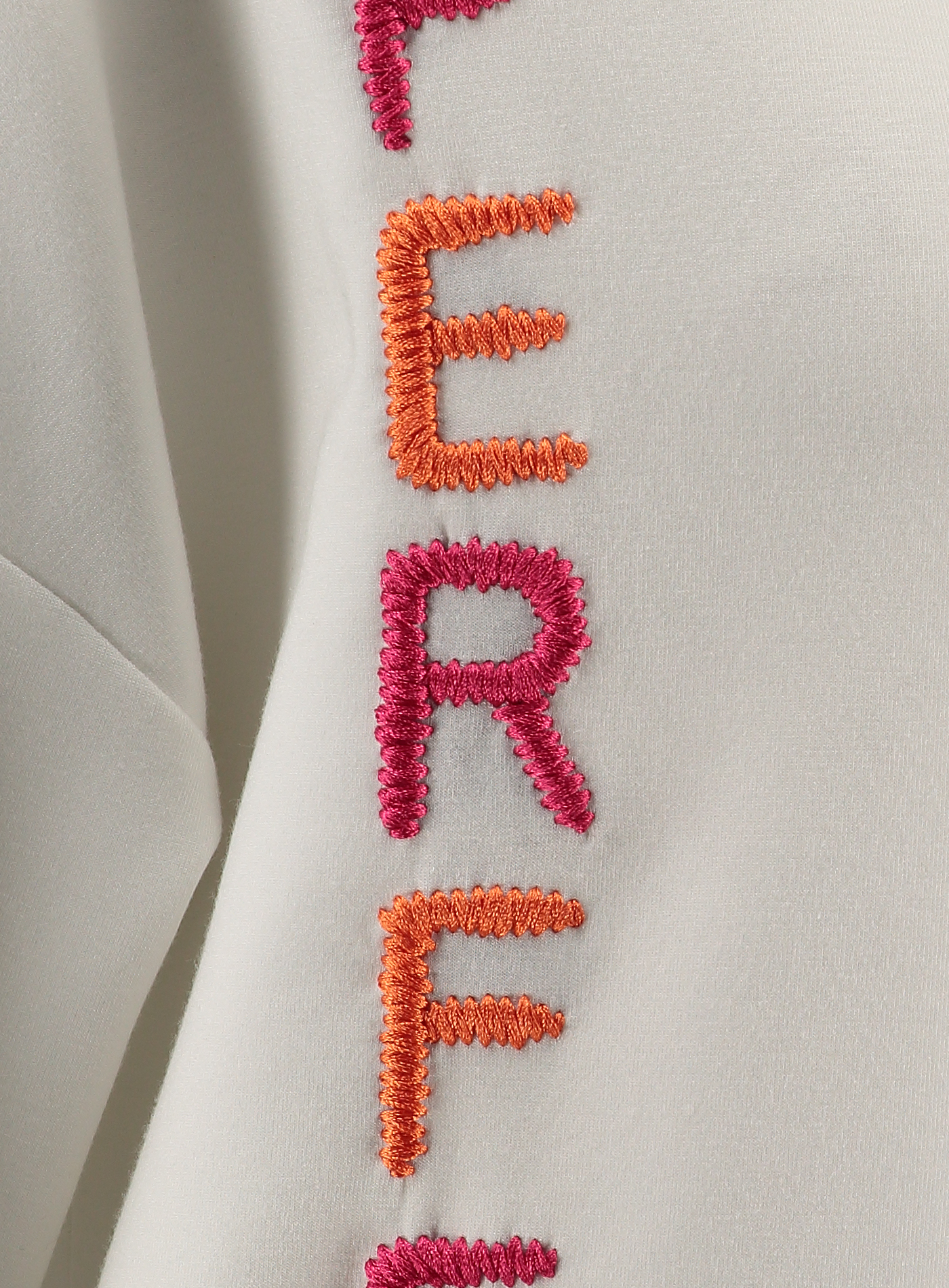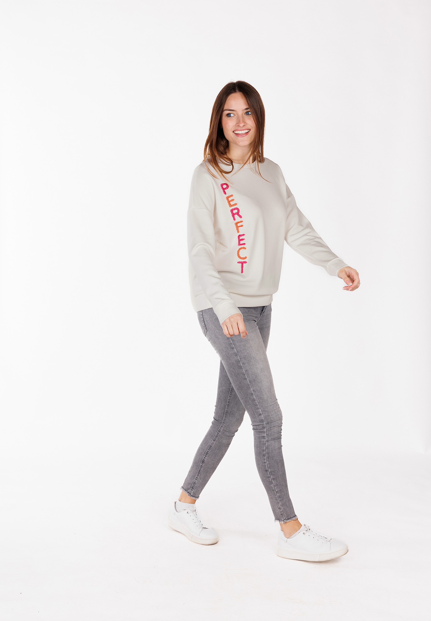 - Print: Auffälliger vertikaler Aufdruck "PERFECT", der Ihrem Outfit eine moderne und selbstbewusste Note verleiht.