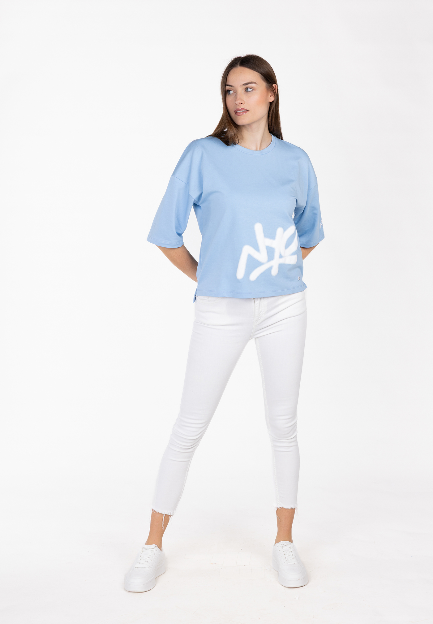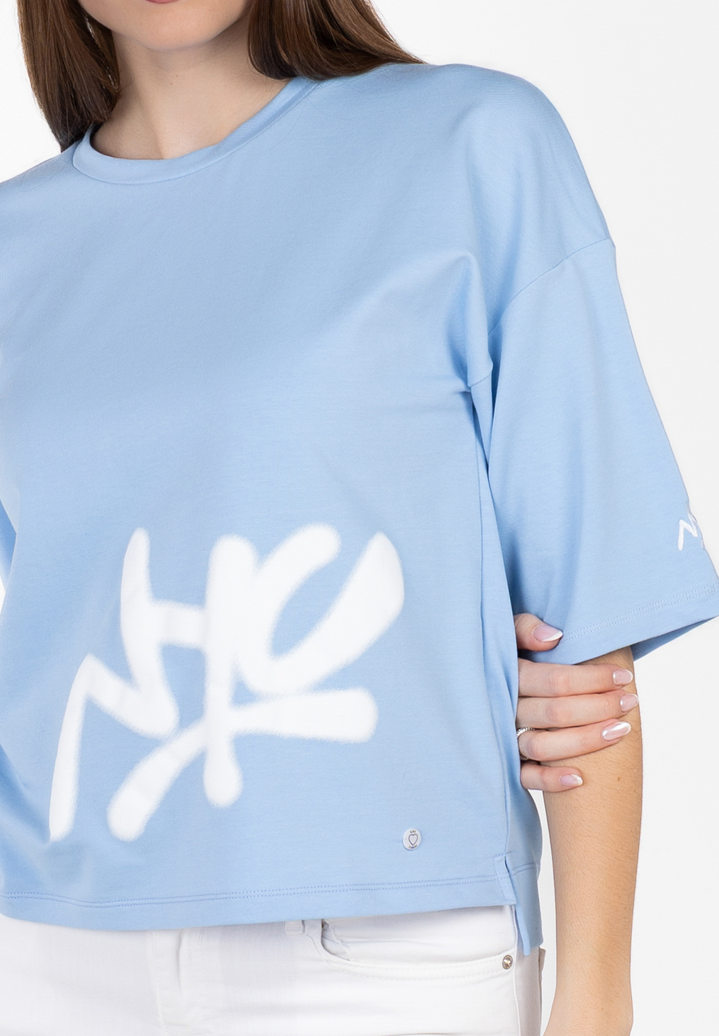 dem Look eine kreative, edgy Note verleiht. Der weite Halbarm und der lockere Boxy Fit sorgen für ein trendiges,