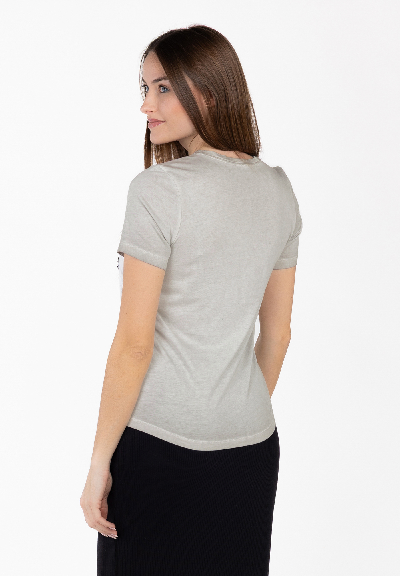 Das softe Shirt kombiniert einen gewaschenen Look mit einem auffälligen Pailletten-Skull auf der Vorderseite.