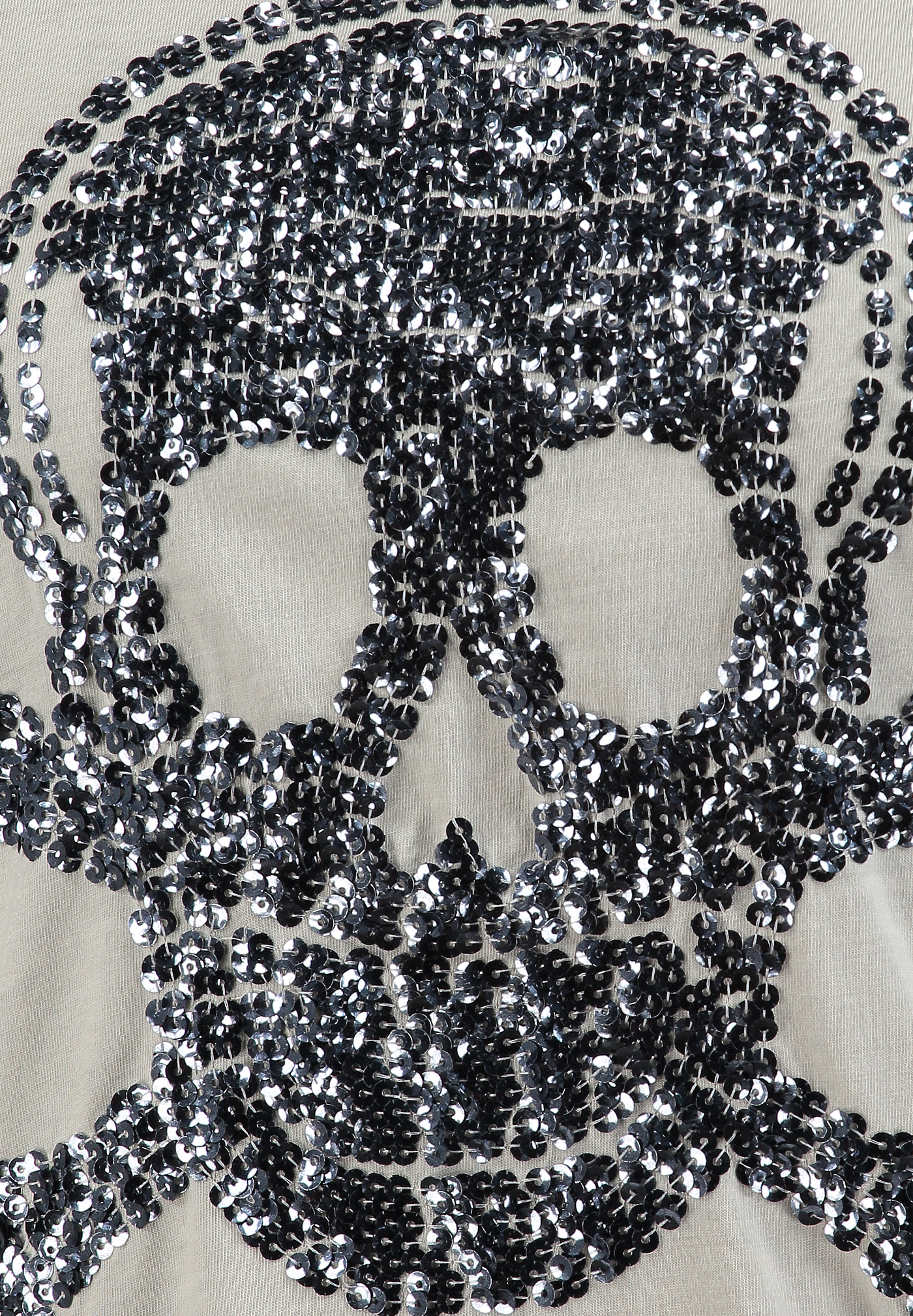 - Schwarzer Pailletten-Skull: Hochwertige, funkelnde Pailletten für einen rockigen, glamourösen Eye-Catcher.