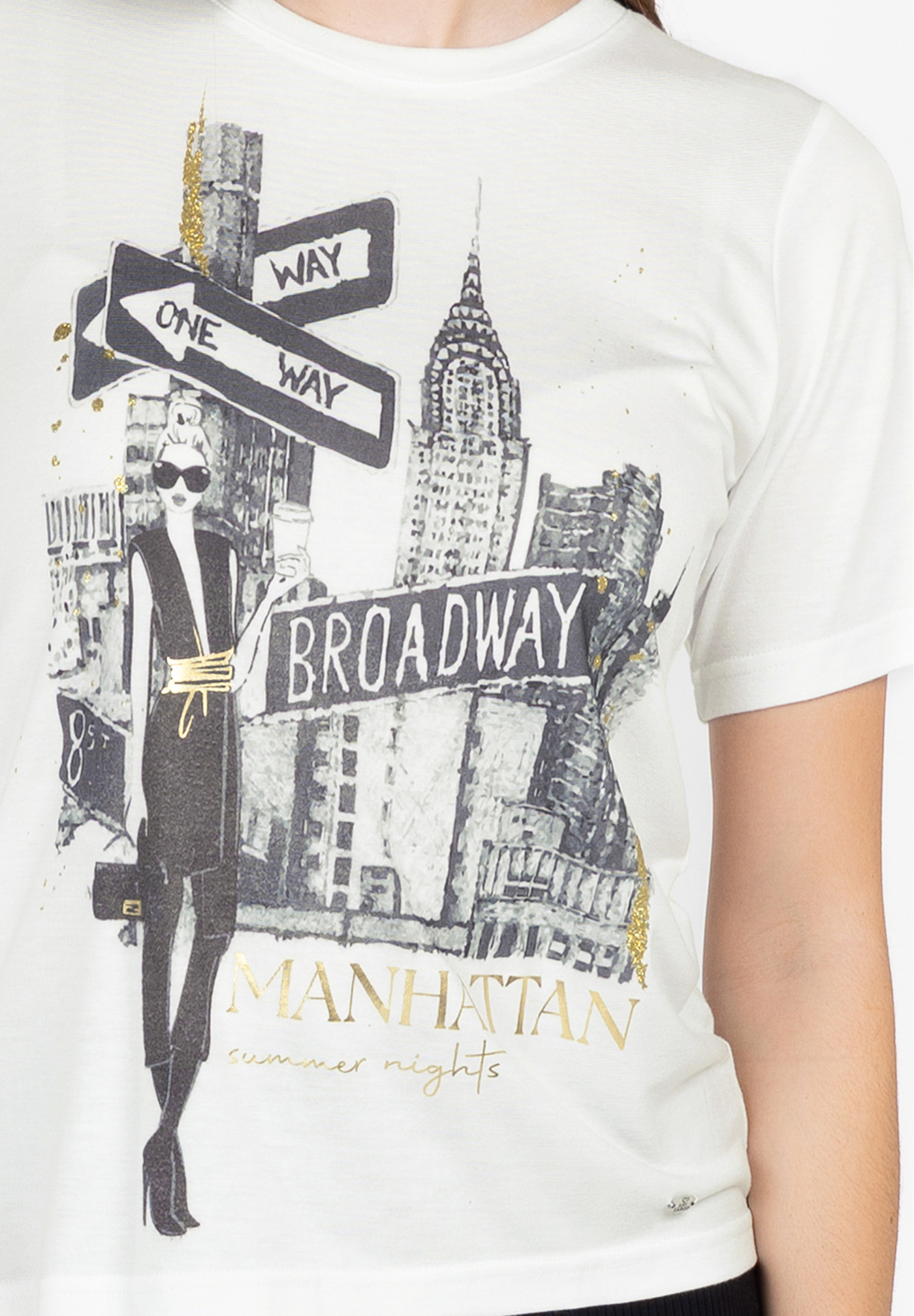 - Stylischer New-York-Print mit Skyline, Broadway-Schriftzug & urbanem Motiv