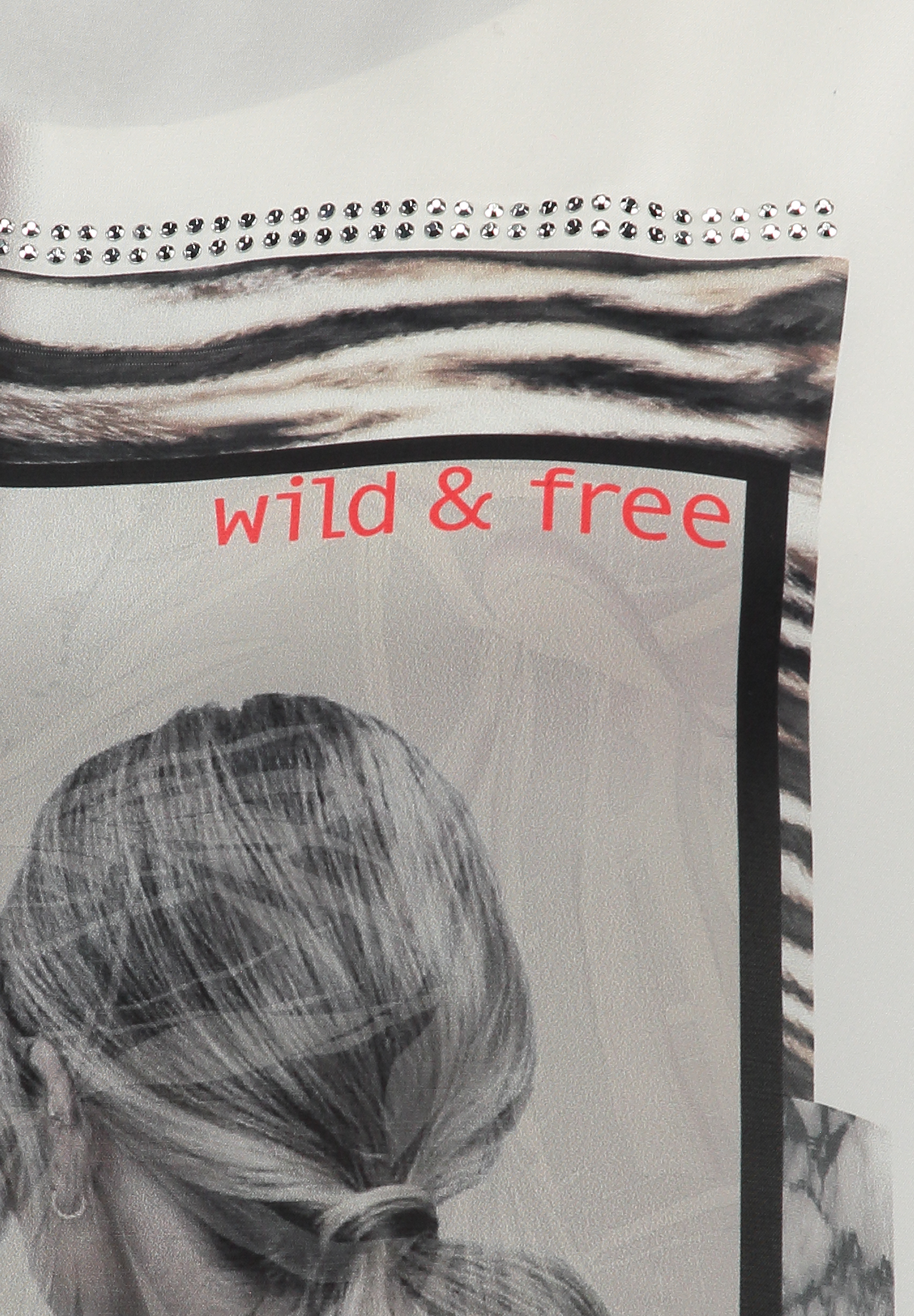 Frauen, die stilvolle Designs lieben. Mit seinem auffälligen Fotoprint, kombiniert mit dem Schriftzug