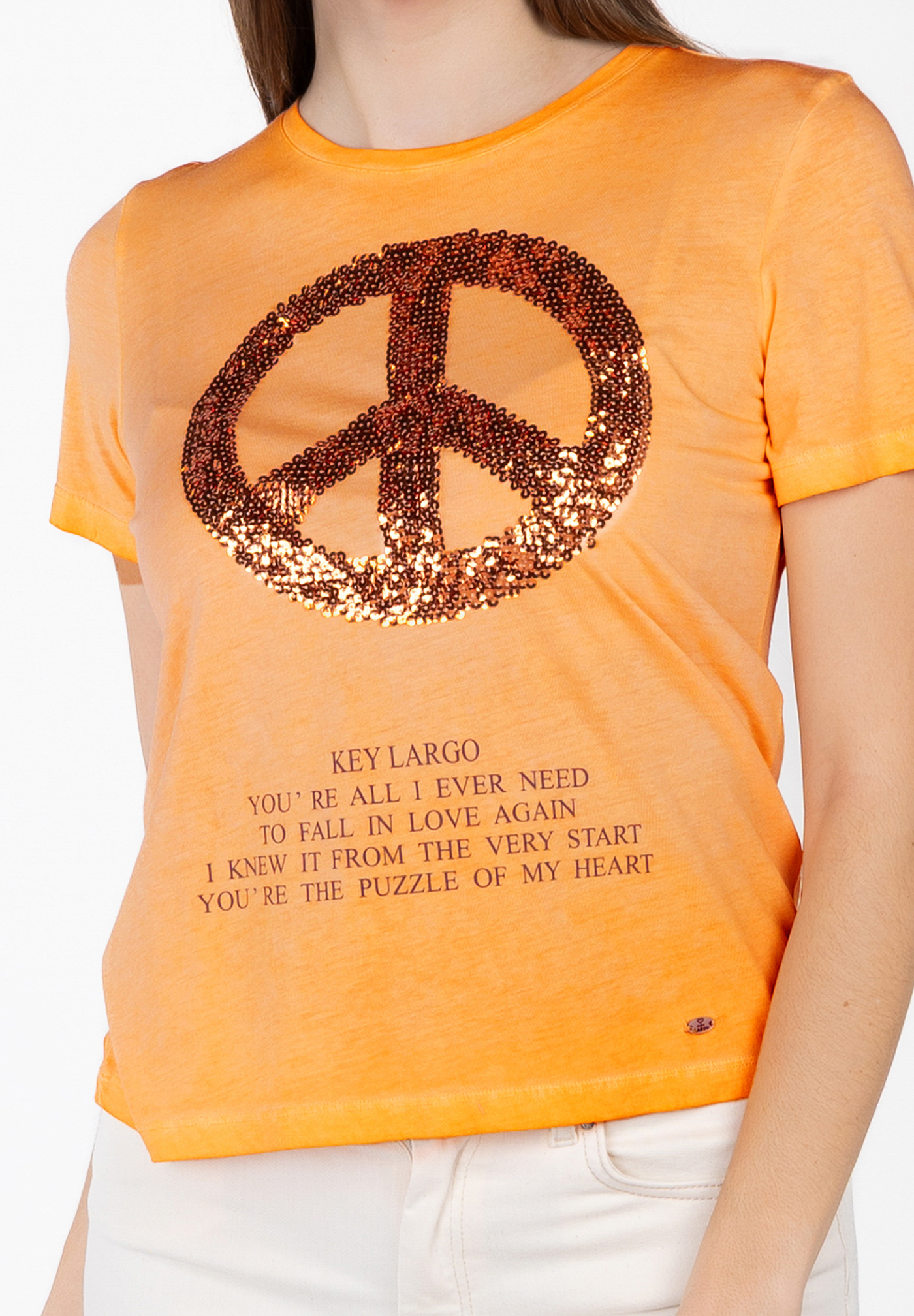 Das coole Shirt zieht mit seinem großen, funkelnden Peace-Zeichen sofort alle Blicke auf sich