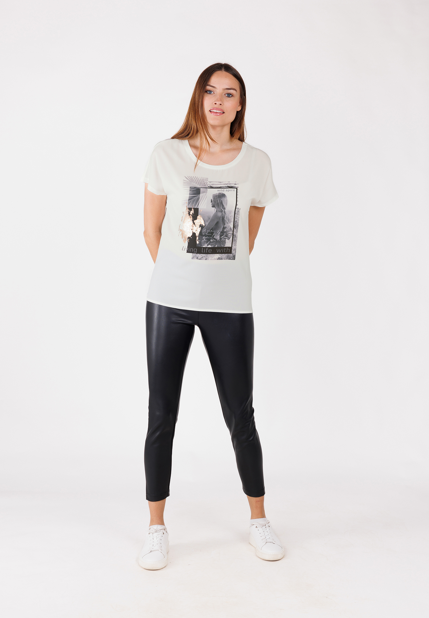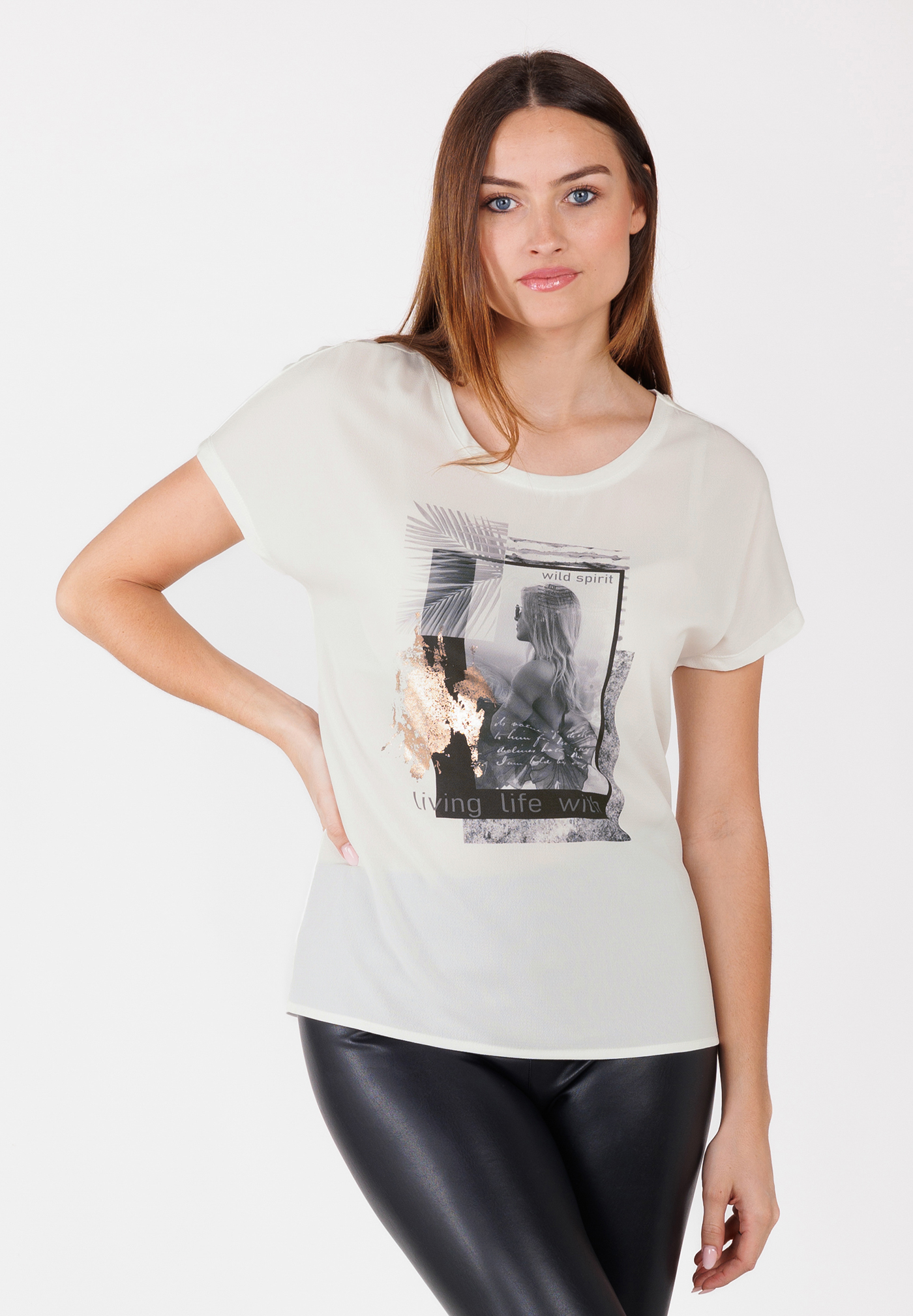Moderner Fotoprint mit Glanzelementen als Hingucker. Perfekt zu Jeans, Shorts oder Röcken für... mehr
