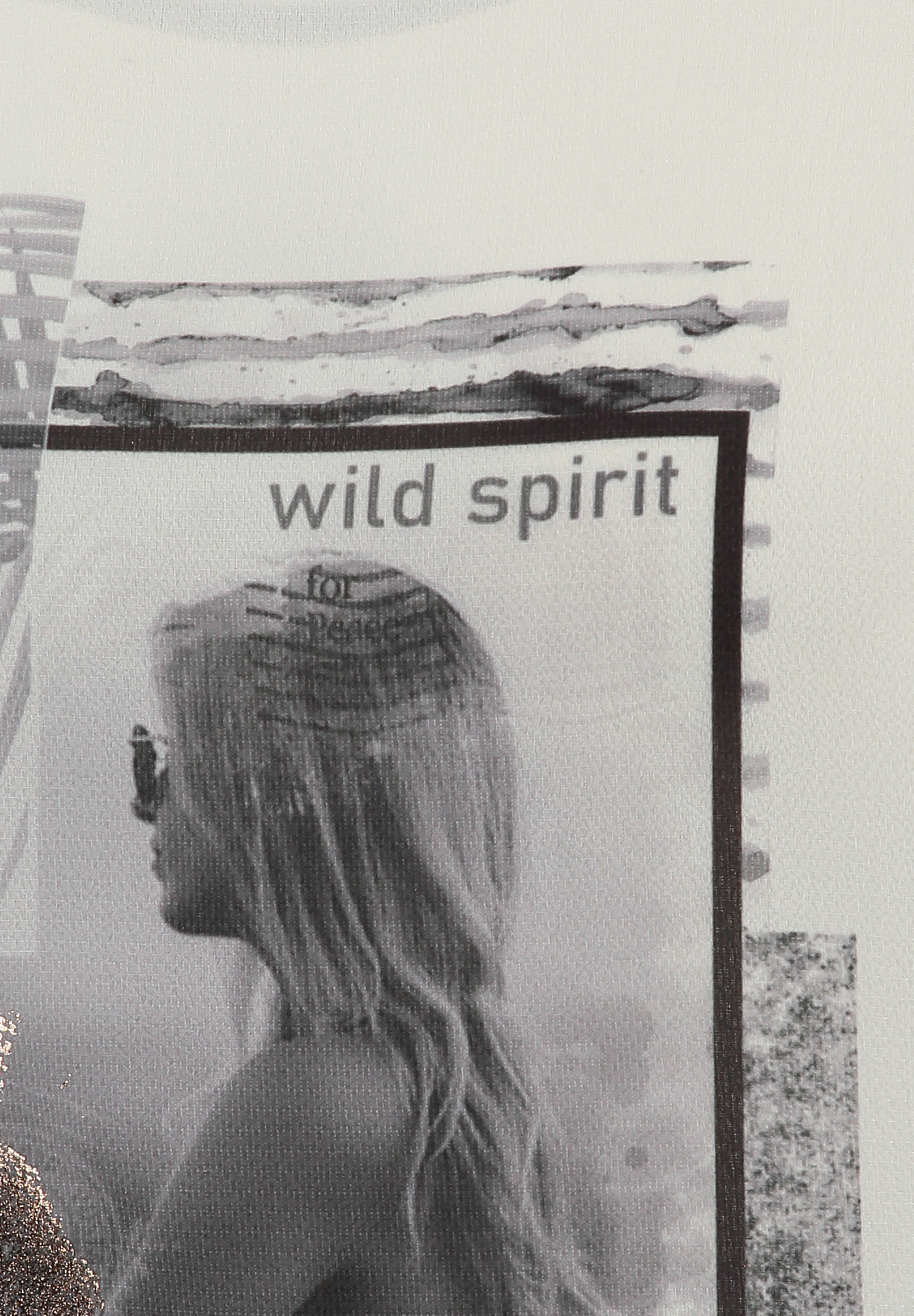 "Wild Spirit - Living Life With" verleiht dem Shirt einen modernen und lässigen Touch. Der lockere