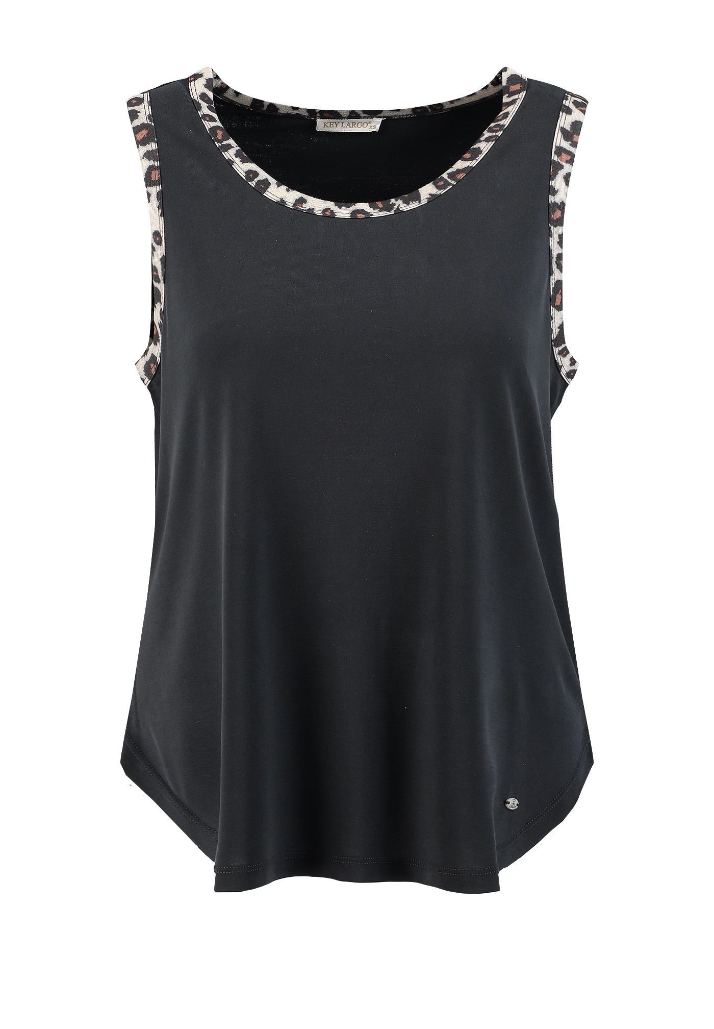 - Modernes Design: Schlichtes Top mit trendigem Animal-Print am Ausschnitt
